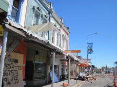 ,The fronts of some Christchurch city buildings collapsed during the first September 2010 earthquake. Image: LEARNZ.