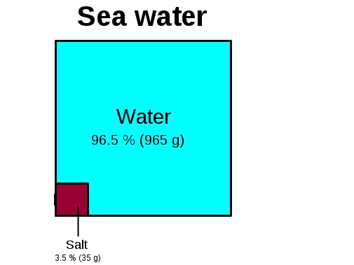 ,Sea water has about 3.5% salt making it denser than fresh water. Image: Public Domain.