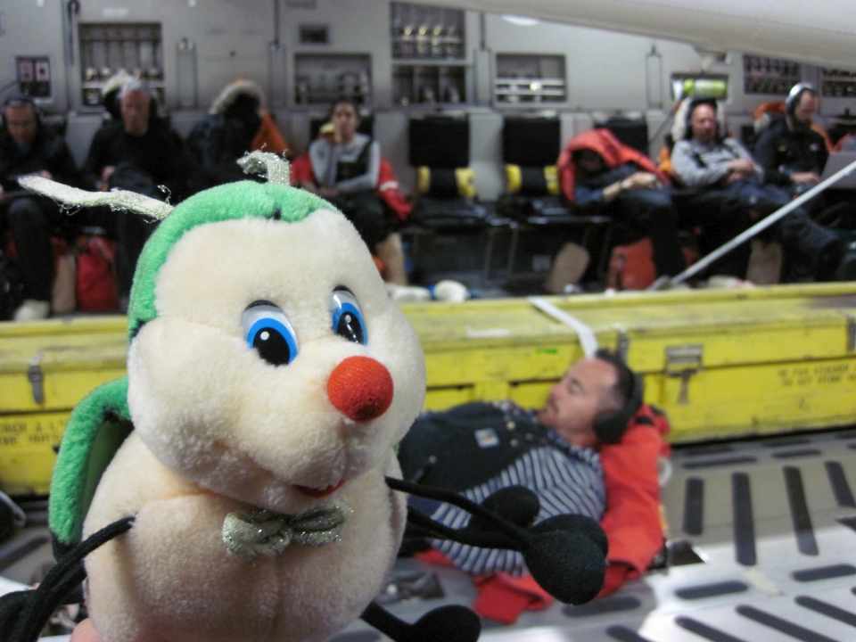 Buggles enjoys his flight down to Antarctica. Image: LEARNZ.
