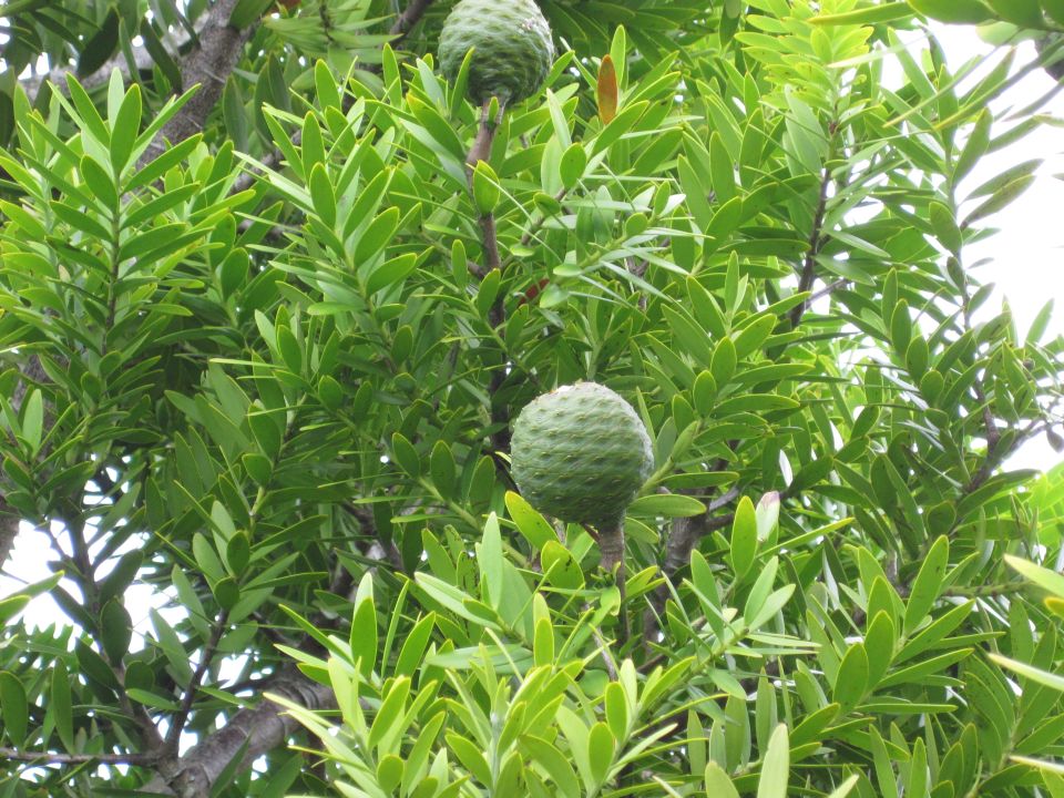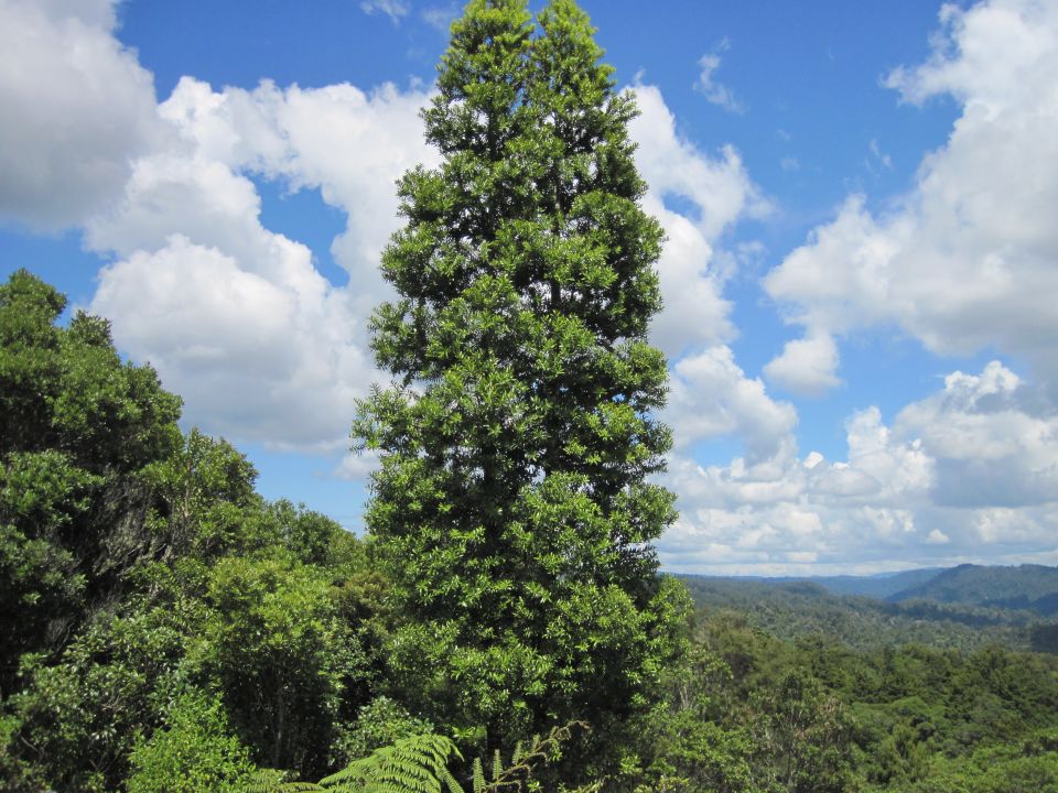 The kauri is a conifer which means it makes cones. Male cones are finger-shaped and fall once they have let go of their pollen in spring. Female cones are round. They ripen after three years of growth and release seeds that are spread by the wind.