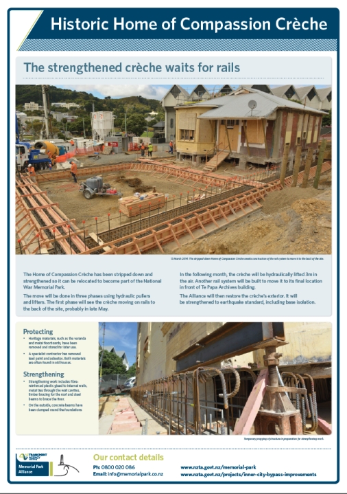 Site map for National War Memorial Park and Underpass, showing Home of Compassion Crèche location before relocation.